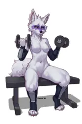 Anyways, how would anthros do certain exercises like the overhead press I've depicted here? The bar passes really close to the face. Felines might just barely get by since their faces are only slightly pointier than ours but canines would run into problems with their big ol' schnozes. Then, as fond as I am of digitigrade anatomy, I probably wouldn't have tried this with a heavier load in this pose. I stumbled furward a bit after the first rep. Balance is a problem digitigrade anthros would have generally (if we're being realistic), but exercises like these in particular would test the limits.