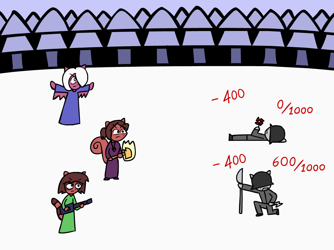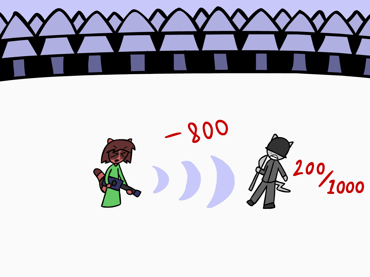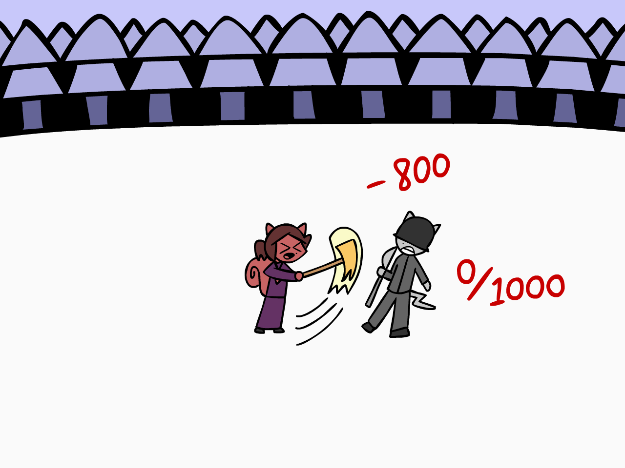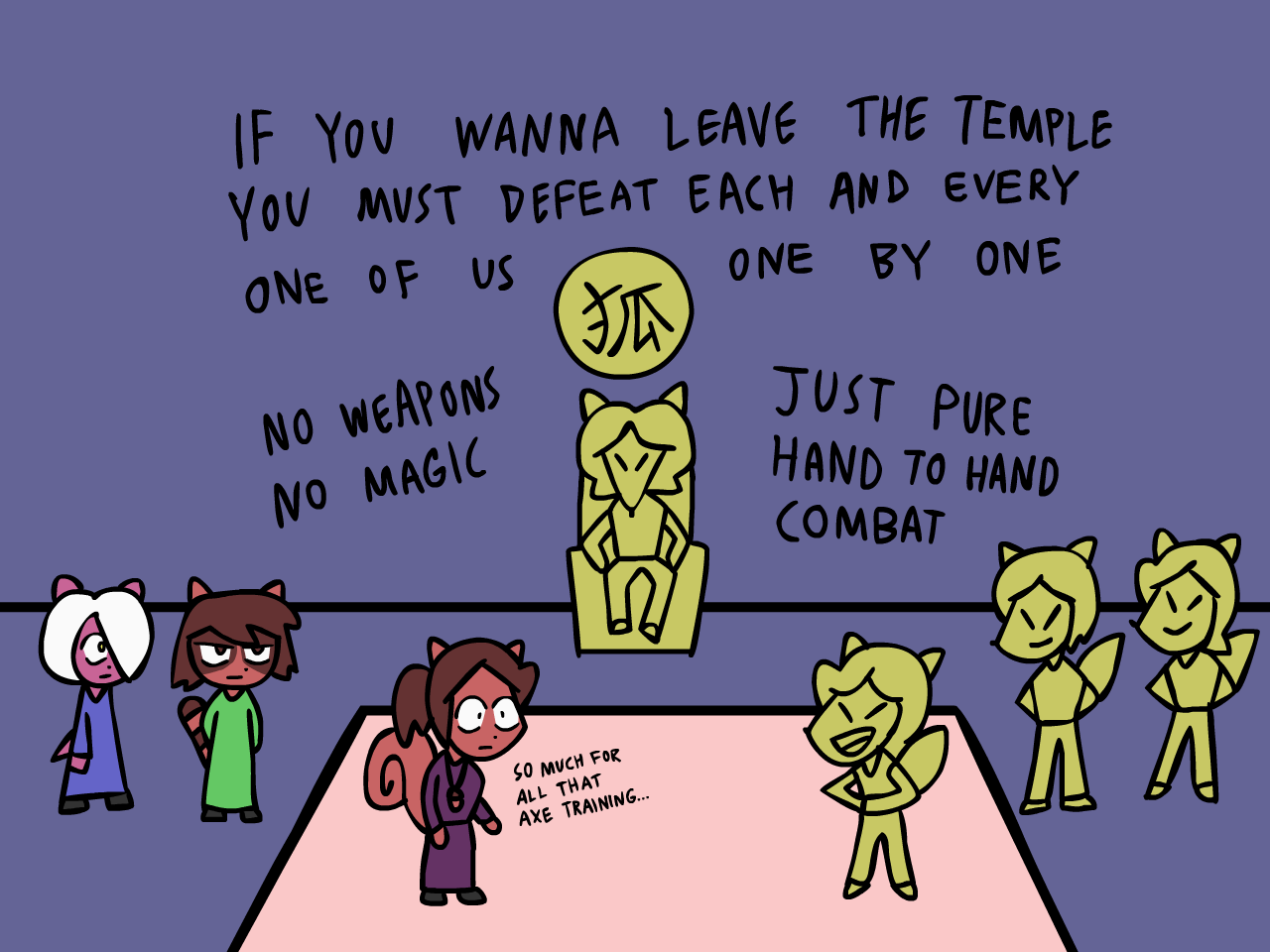 >My only chance of winning is lasting long enough to figure out the pattern of each Kitsune fighter
