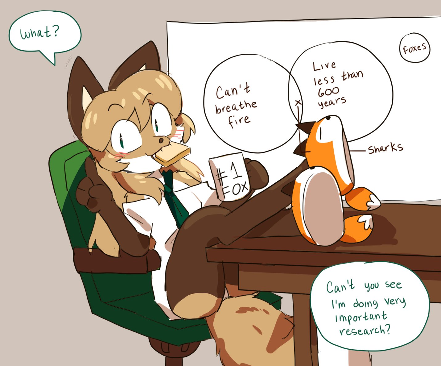 It's a bit hard to define, I agree that it would arbitrarily fall under a "too sexual" or "too obscene" definition. But just to make a case fur this >>88140 particular picture, it's very clearly sexually provocative in a "goofer" way, you have the fox in the center of the picture wearing the tightest jeans imaginable to show off her FAT FOX CUNT and bubble butt, to the left, a pink fox with emphasized, pushed up tits. With the two characters in the back with equally emphasized tits and fox ass. When you look even closer at the image, the cafe itself plays on "goofer" sex jokes with one of the deserts being a vixen creampie (possibly related to the FAT FOX CUNT earlier, or just the establishment as a whole with most of the staff being foxes, with the exception of a raptor(?), whose character design I find kind of neat) and a drawing of a fox head and humongous tits which I just noticed upon further inspection.