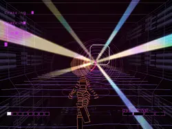 I'm thinking a first person rail shooter/racer where you have to avoid somewhat indeterminate objects on a time limit. I'm thinking of an art style with a gameplay style similar to Ballistics and Rez; and with a rotating psychedelic background like those in Earthbound, rotating around the screen like that one tunnel level in Castlevania IV.