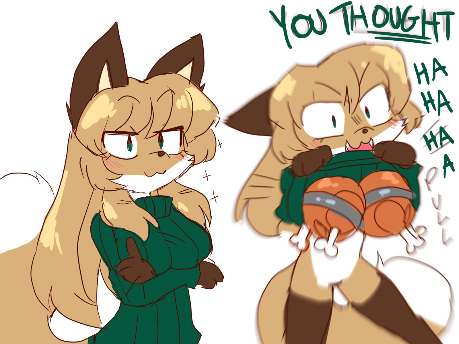 I think it's just supposed to represent a rough day. Curling up in an oversized shirt/sweater/hoodie is a pretty common "girl wanting to feel wrapped up and protected" thing, as is cuddling with the big plushie/beanbag. The snacks strewn about look like candies (girly comfurt food, of course), but regardless of what they are, the slight uncleanliness shows that she's not very concerned about being tidy and proper right now. She's clearly unsure of saying her catchphrase, but isn't totally reserved and unresponsive. The burning laptop gives some insight into why she's upset, but doesn't specify a cause. Maybe her drawing tablet was acting up all day, maybe she got into a fight with an internet friend, or maybe she read something upsetting on a news website.