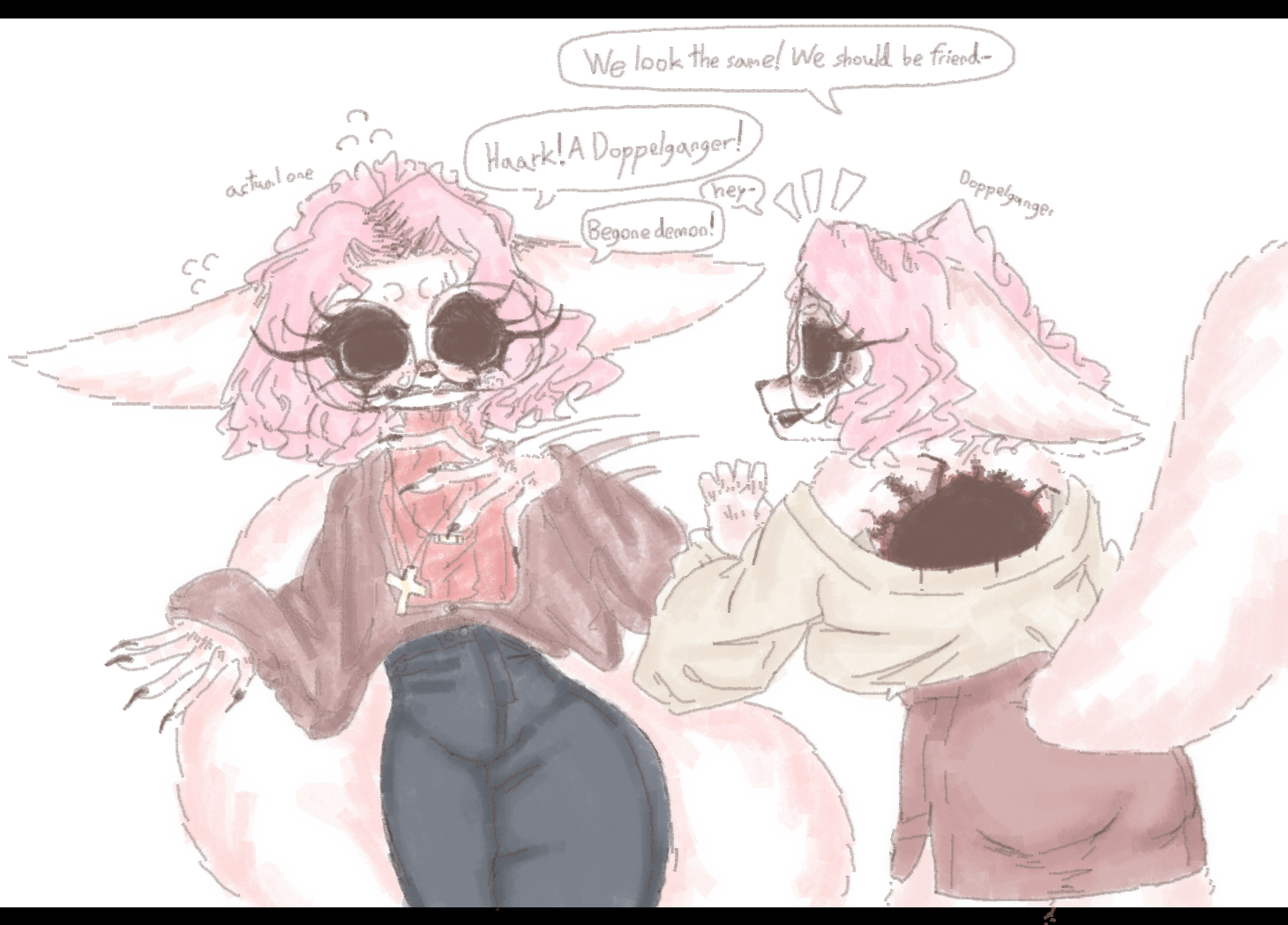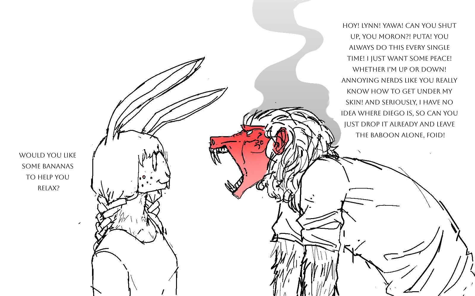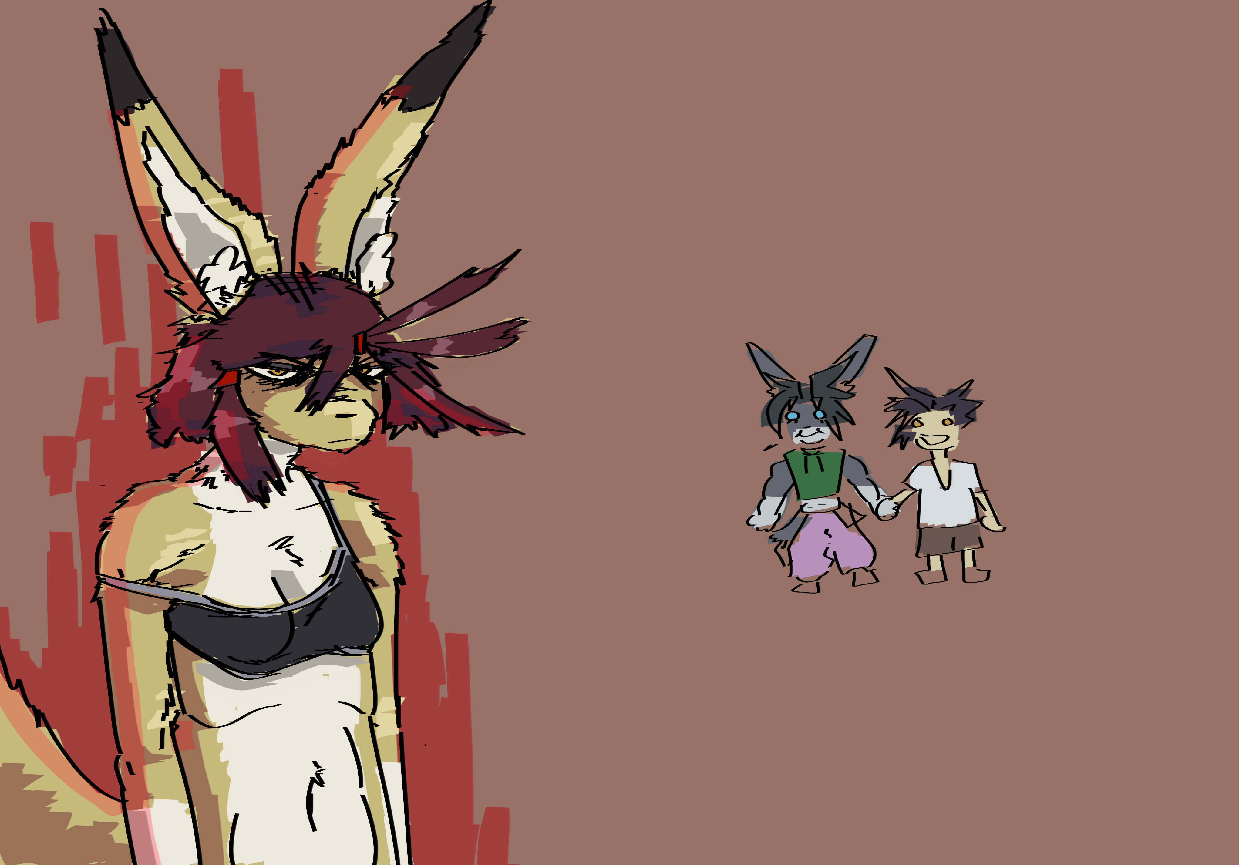 >The deer-woman carrying a fox is technically an Anthro Anhero too based off of Mikayla Reins from SaveAFox, but I omitted the “Anthro Anheroes” title out of respect, as I deeply respect her animal welfare efforts. I actually spent quite a while redrawing and reconceptualizing her face so it would look cute and not like a grotesque caricature.