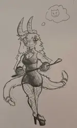 This is peak character design, I love the curls on the horns and her dress. They make her look so cute