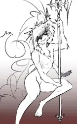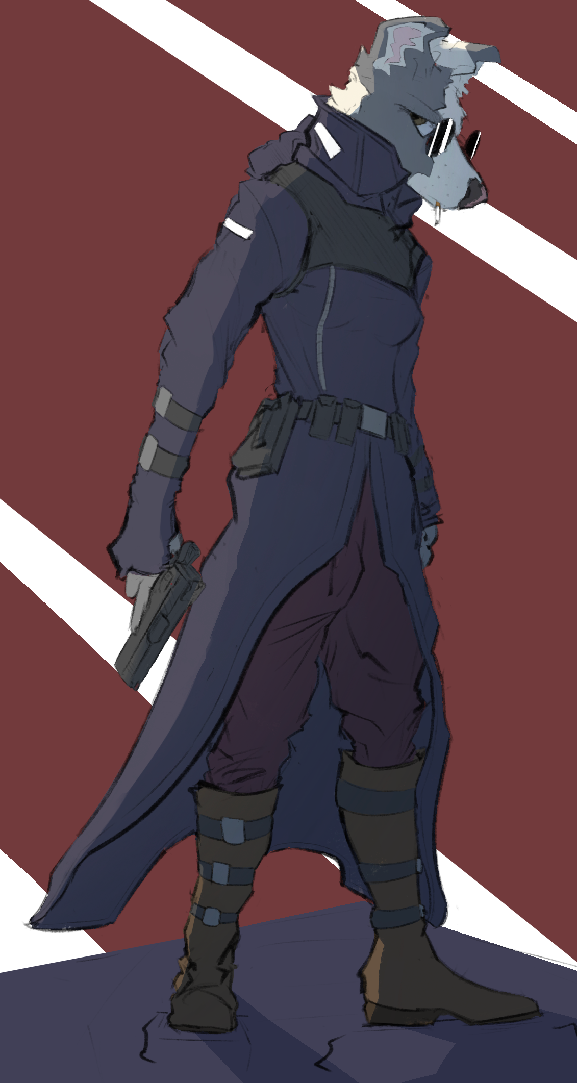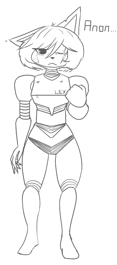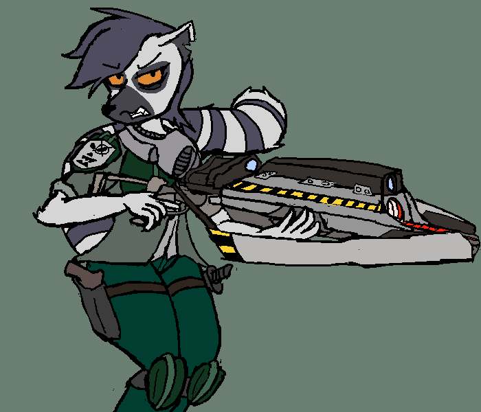 Made a Lemur fur this. Her name is Lurobi and she was a spec-ops soldier who was involed in a mission operating under bad intel which caused her commander to issue a retreat. She was the lone survivor of her squad and she got left behind on the world she was on. She went axe crazy and made a crossbow out of a crashed corvette's mass driver, found a working ship and became a bounty hunter. Kind of phoned this one in but oh well