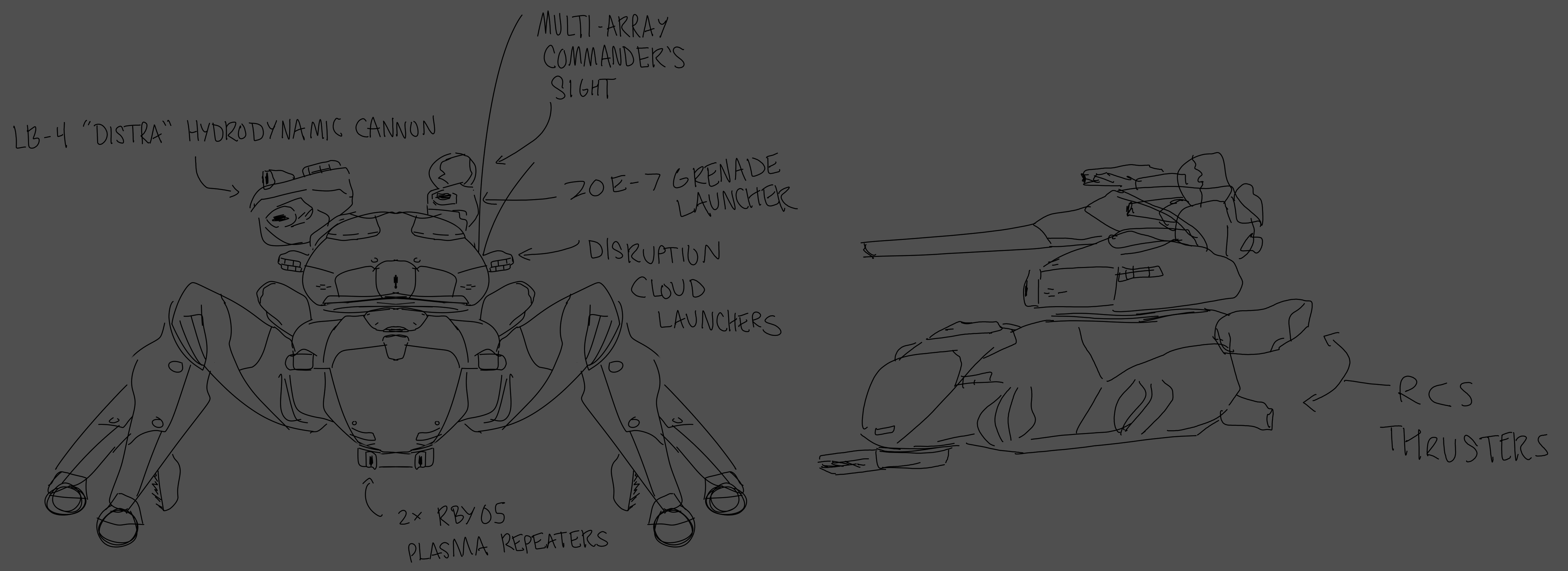 >Armament: x2 80mm HE Frag Cannon, x1 Concussion Missle Launcher (Stock Configuration)