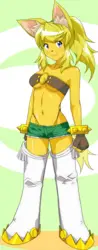 Just saw this on anthro.  Might not be the best place.  Liru can transform into a werewolf pupper but that's not her normal form.  Similar to Aisha who can transform into a more feral version of herself so I dunno.  Don't want to make enemies.